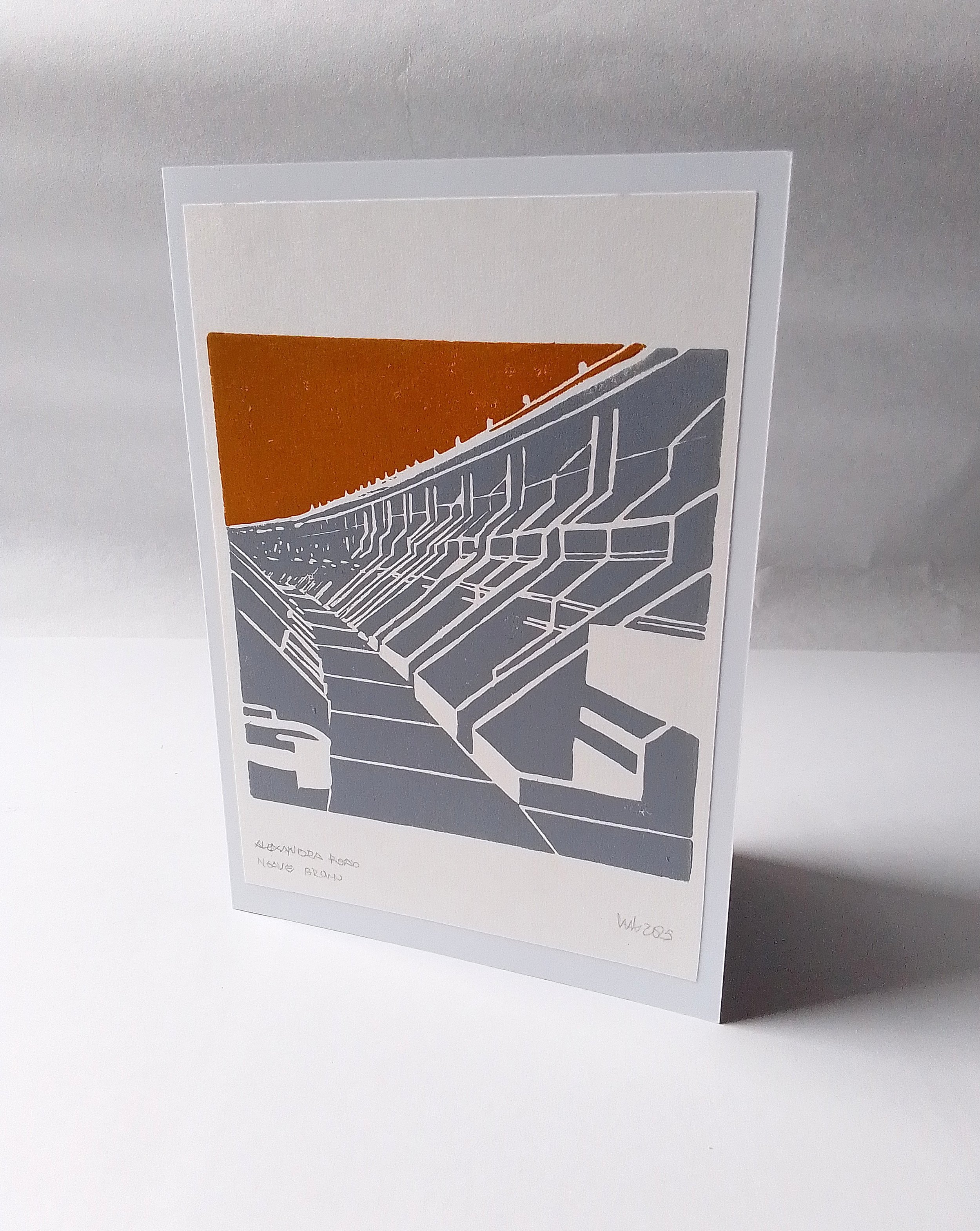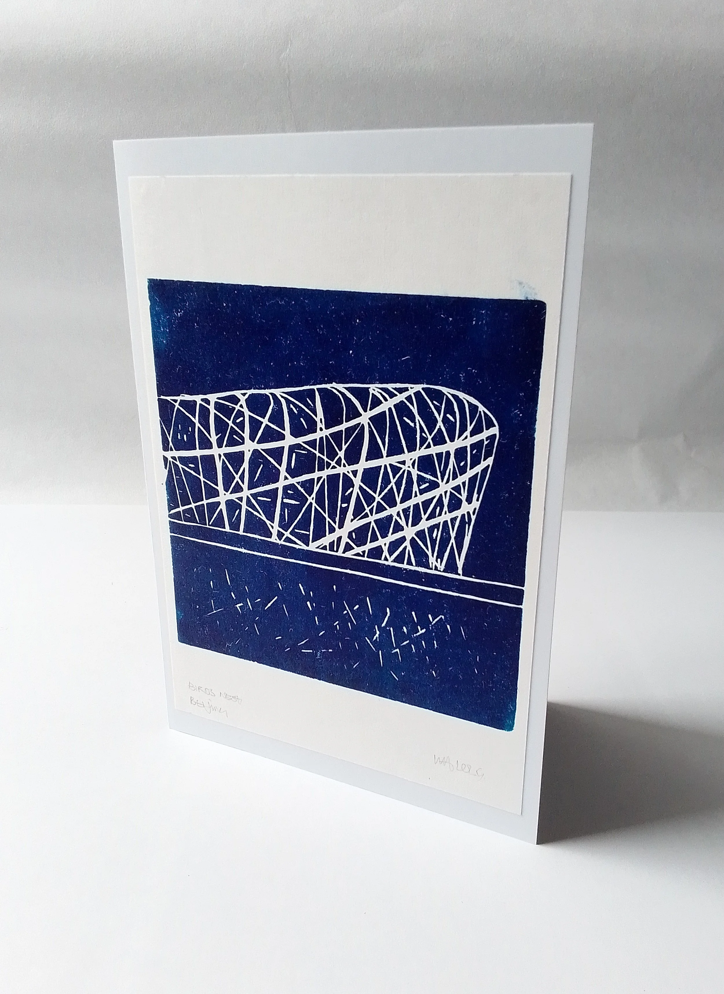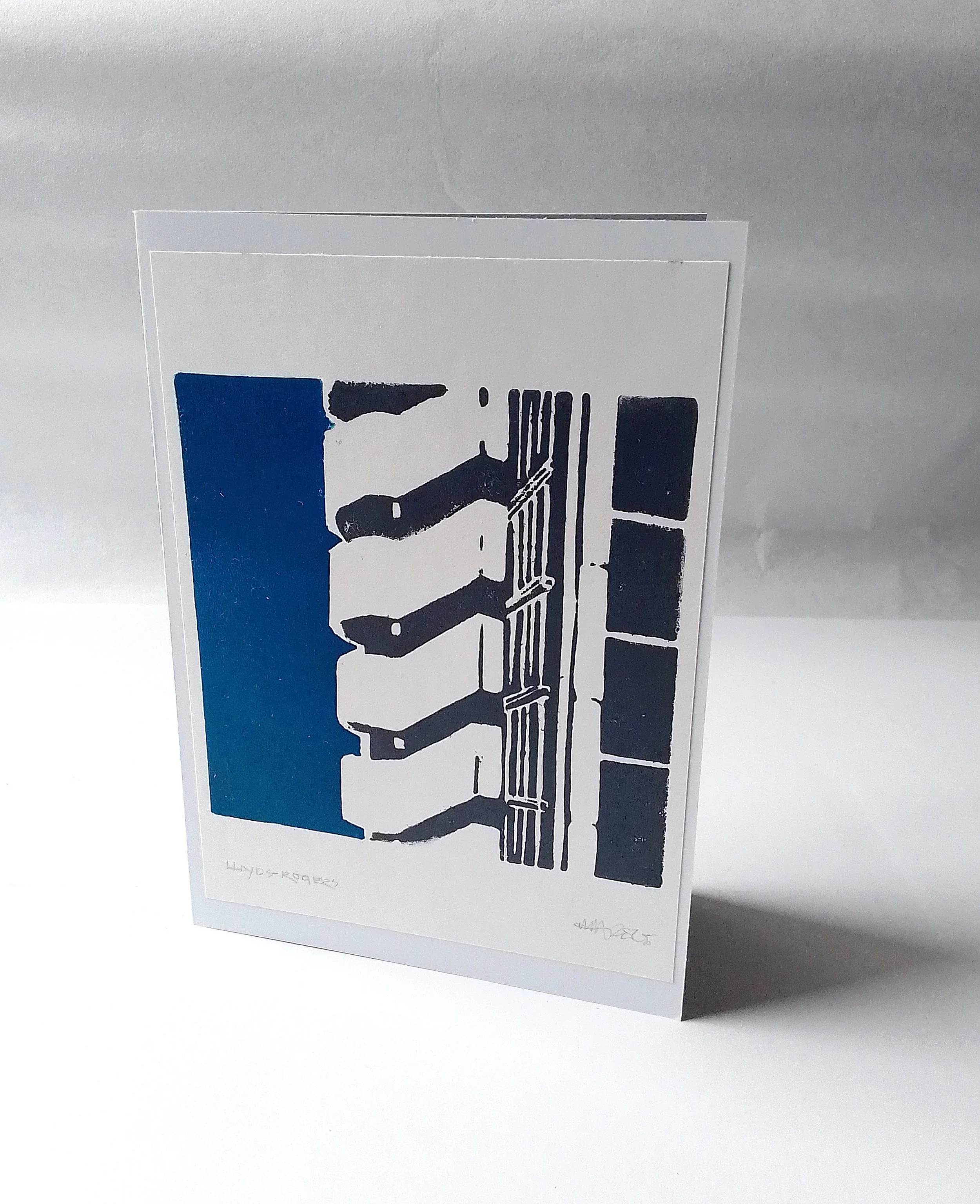 A series of hand printed cards of celebrating iconic architecture. The cards are available singly at £3.00 each or as a selection of 5 at £12.00 (plus P+P). The cards come with an envelope and in a cellophane wrapper .
