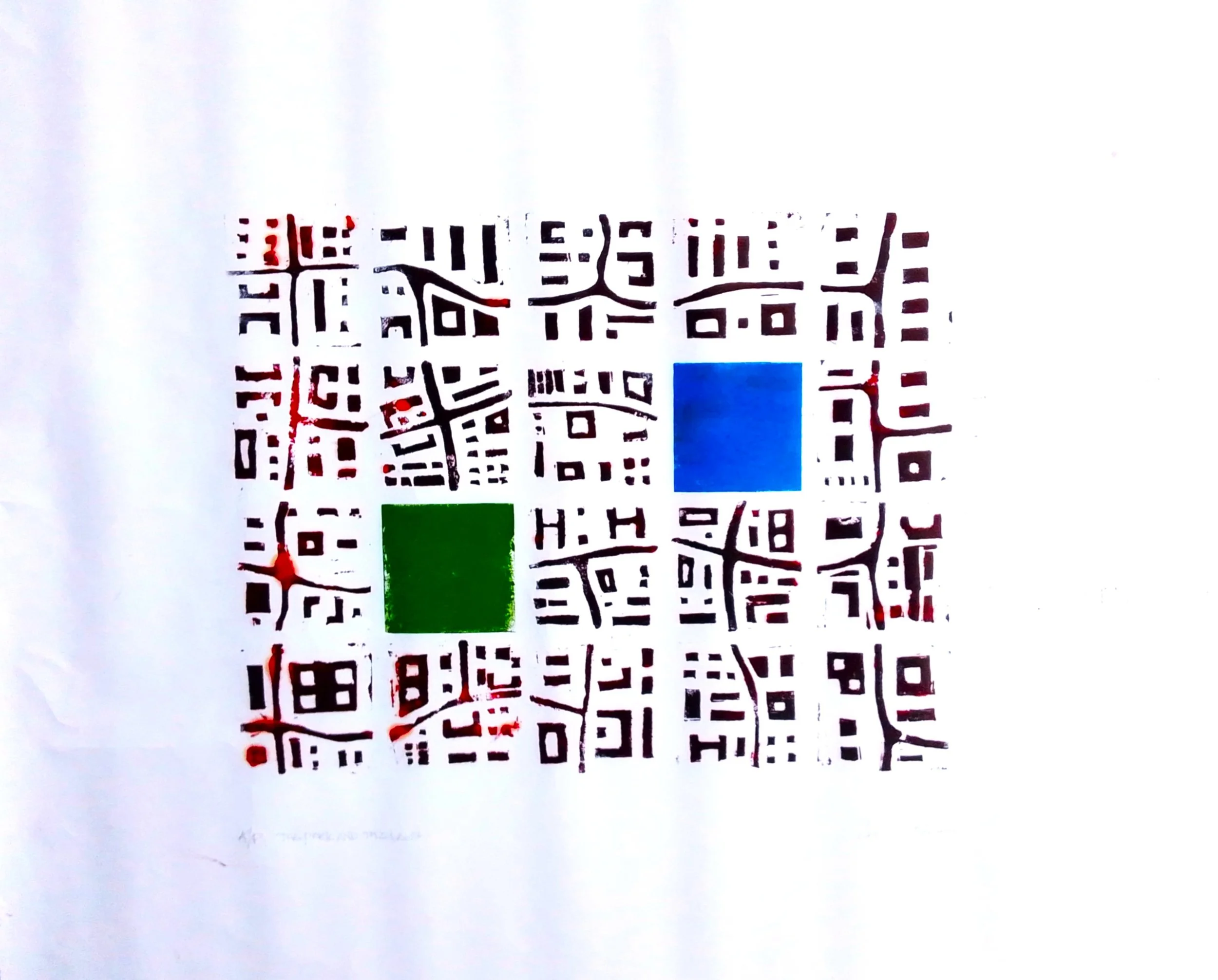 The prints are linocuts and range from simple one colour prints to multi colour layered reduction prints.